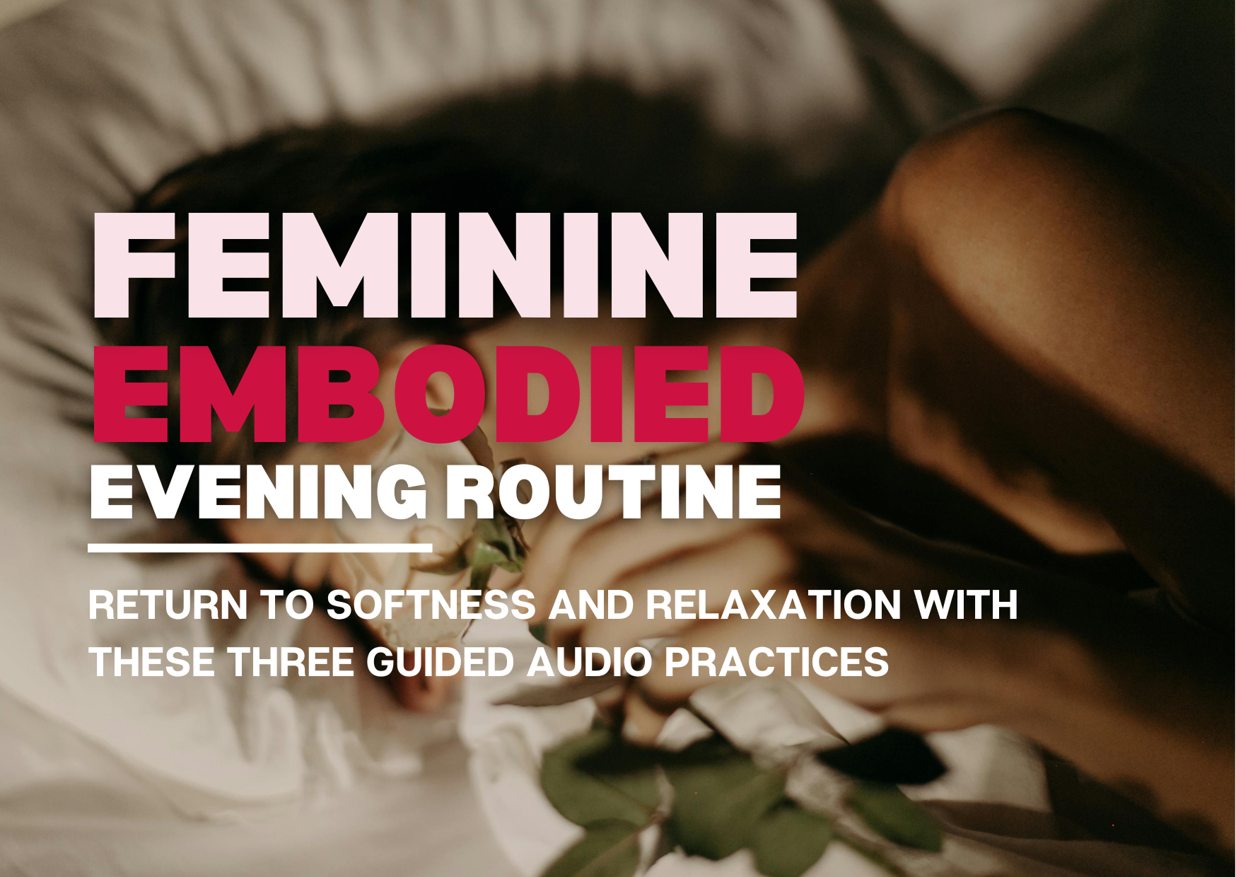 The Feminine Embodied Evening Routine includes three guided audio practices you can listen to before sleep — no screen required.